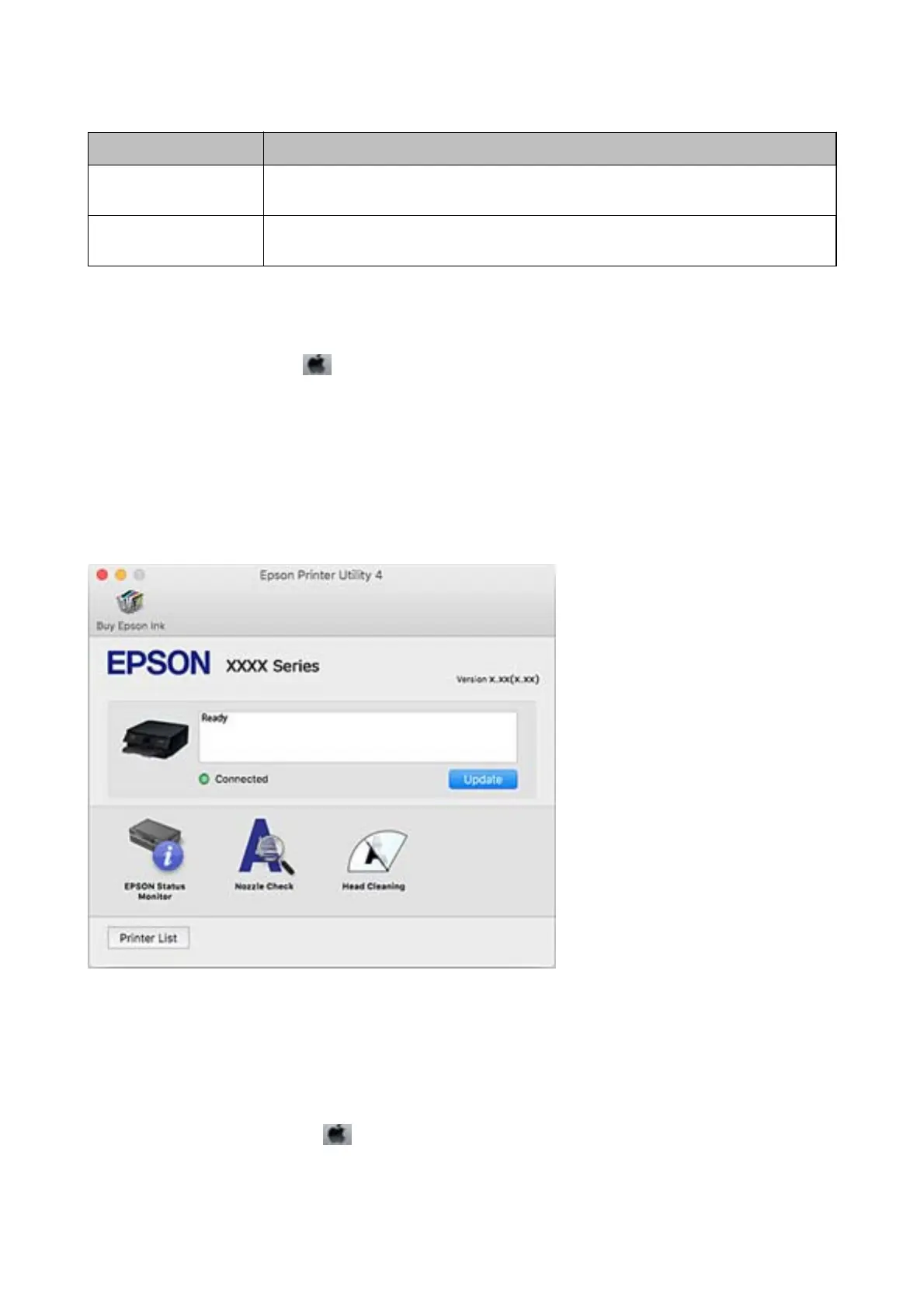 You can run a maintenance feature such as nozzle check and print head cleaning, and by starting EPSON Status