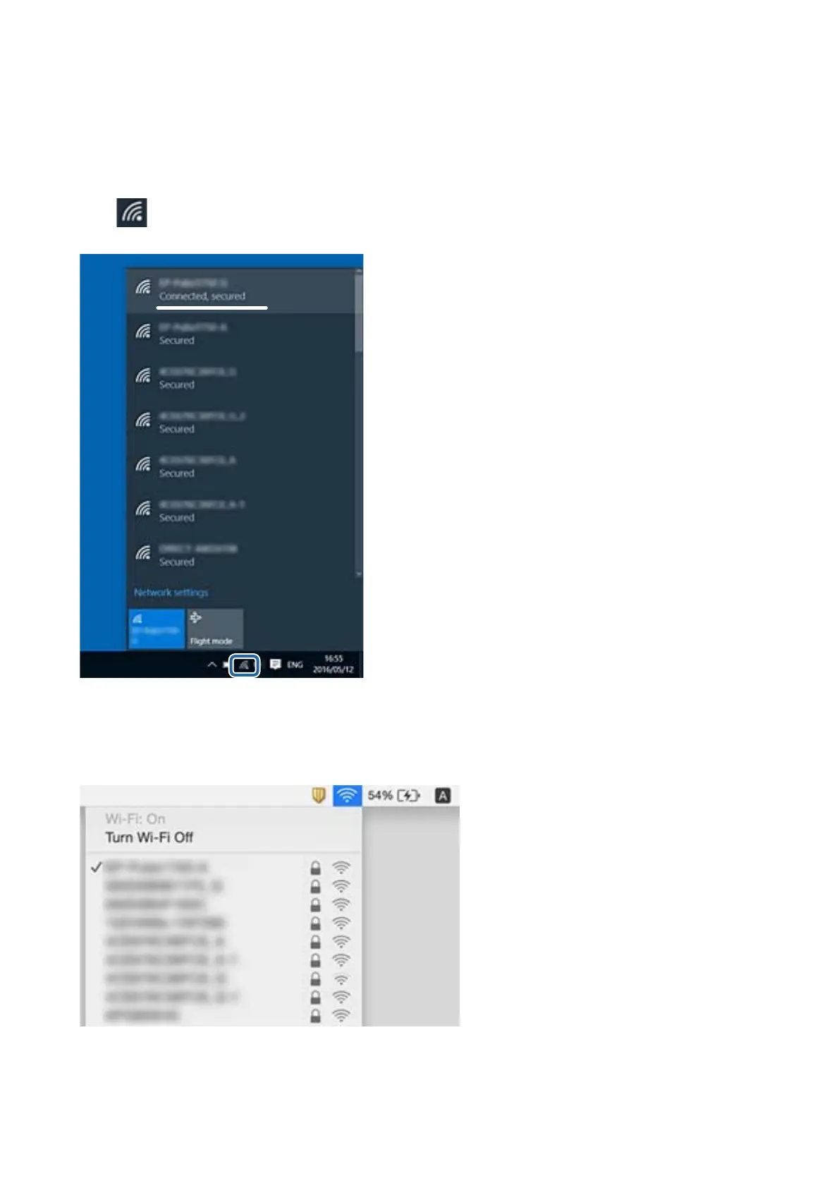 in the task tray on the desktop. Check the name of the connected SSID from the list displayed.