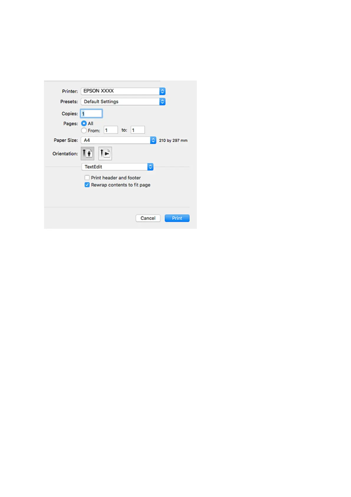 ❏ If the above setting menus are not displayed, close the print window, select Page Setup from the File menu, and then