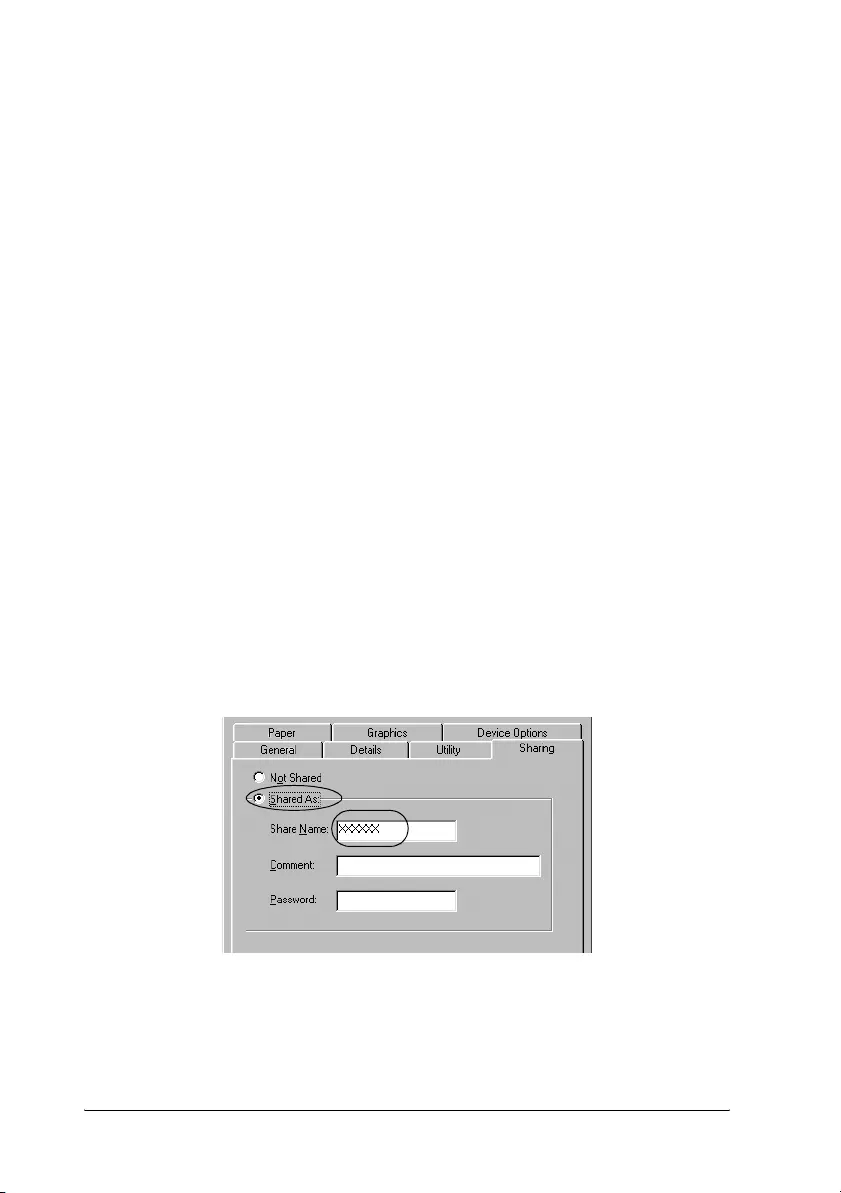 8. Selecteer Gedeeld als, typ de naam in het vak Share-naam