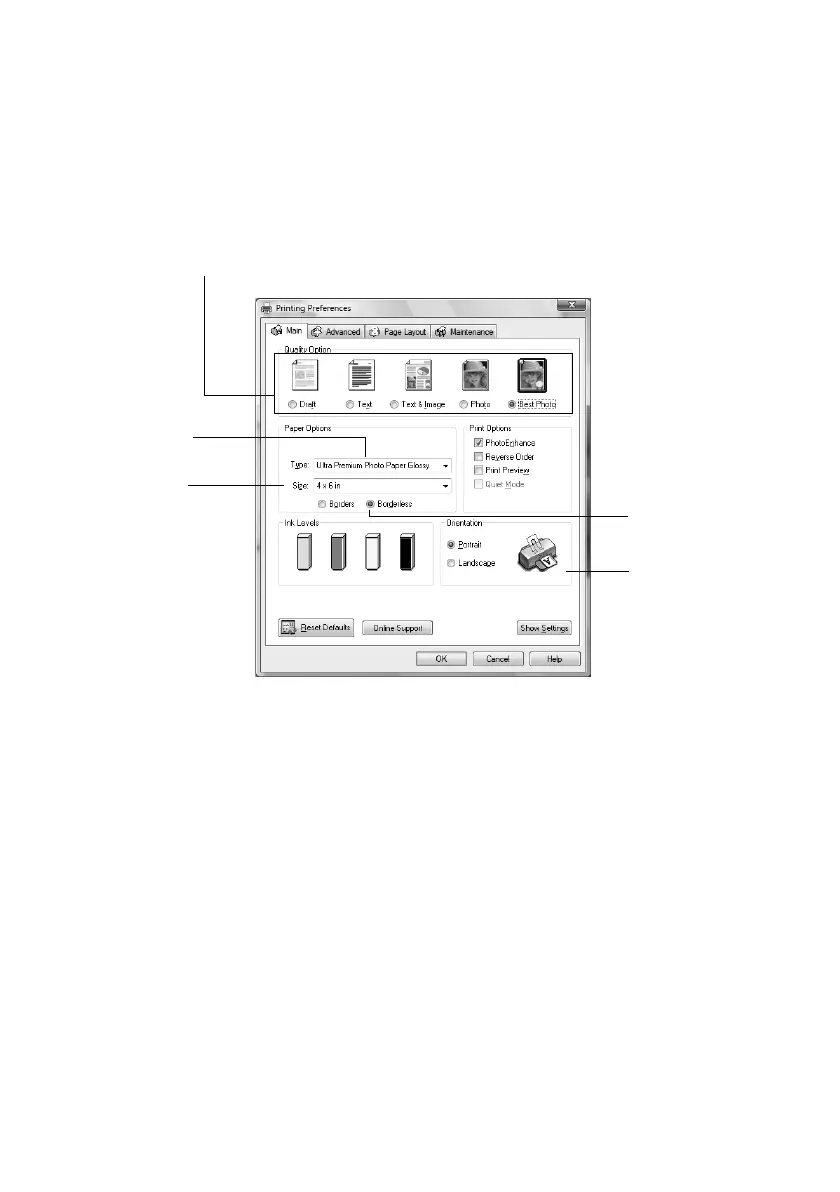 5. On the Main tab, select the basic print settings. Make sure you choose the