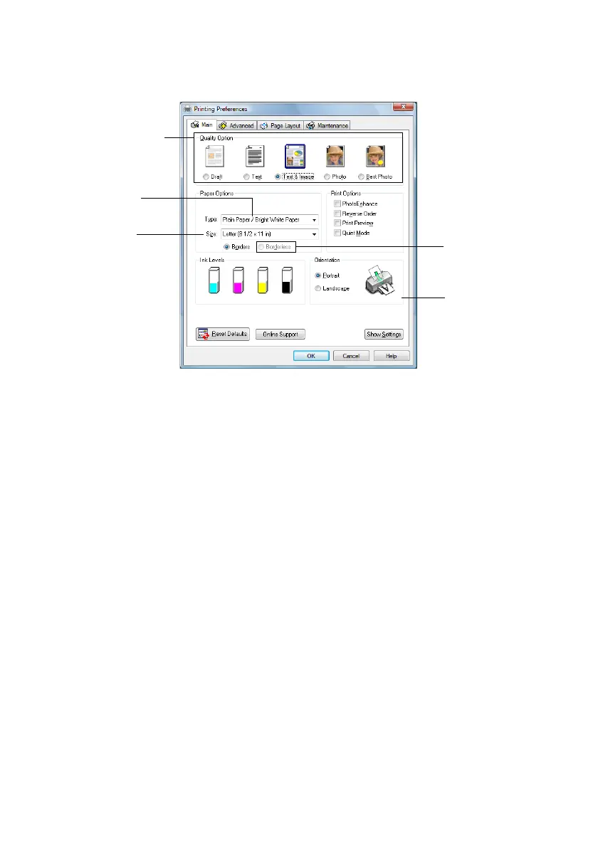 3. On the Main tab, select the basic print settings. Make sure you choose the