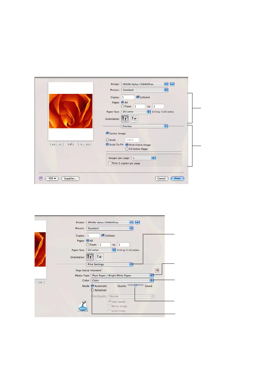 bottom of this window. (If you’re printing from Preview, you see the settings