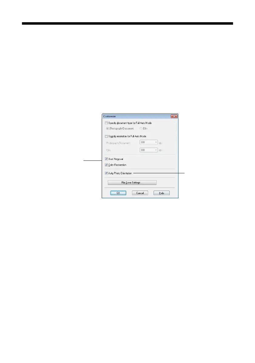 Dust Removal options in Epson Scan’s Full Auto Mode. In Home and