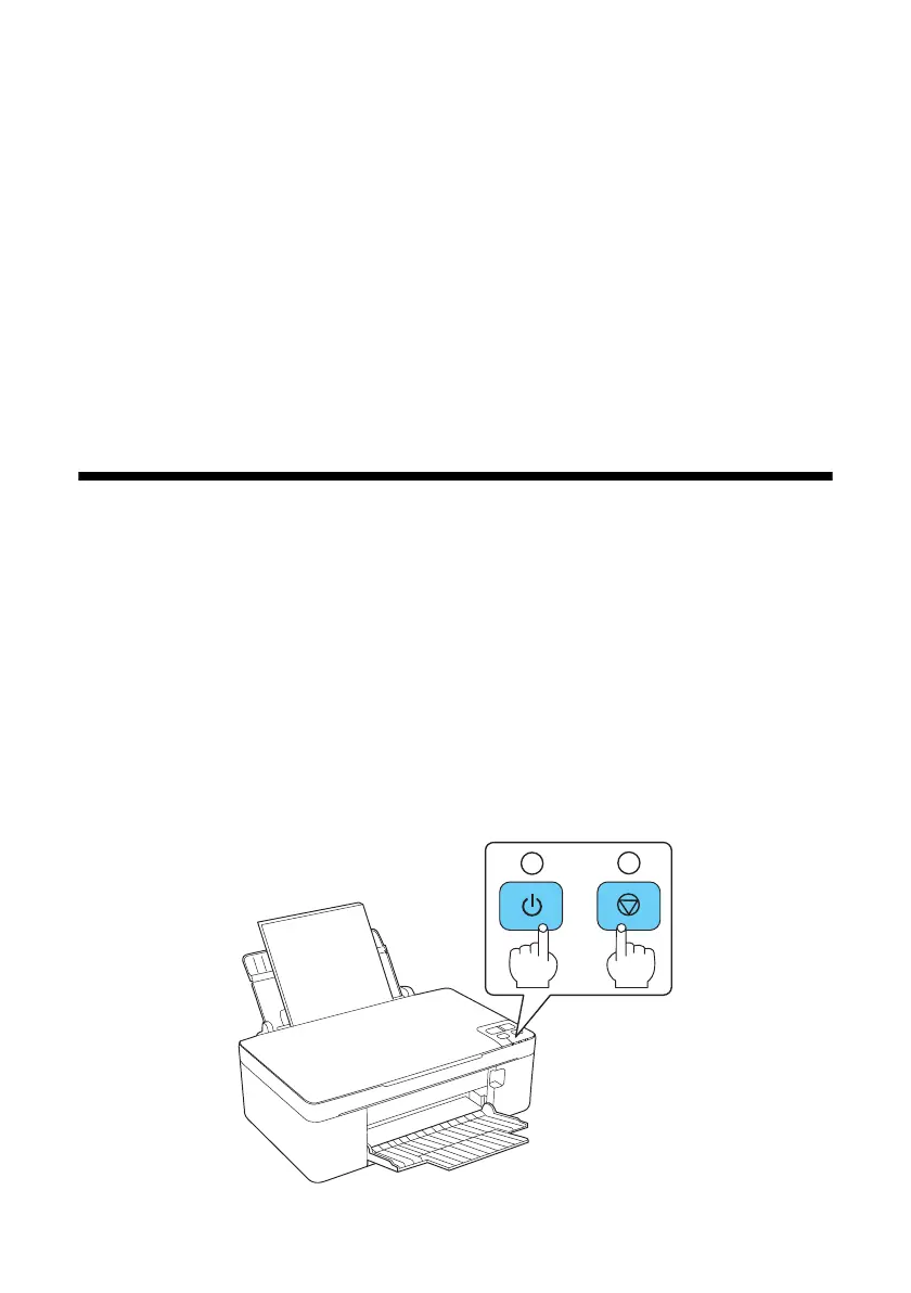 printer back on. Hold down both buttons until the P Power light begins to flash,