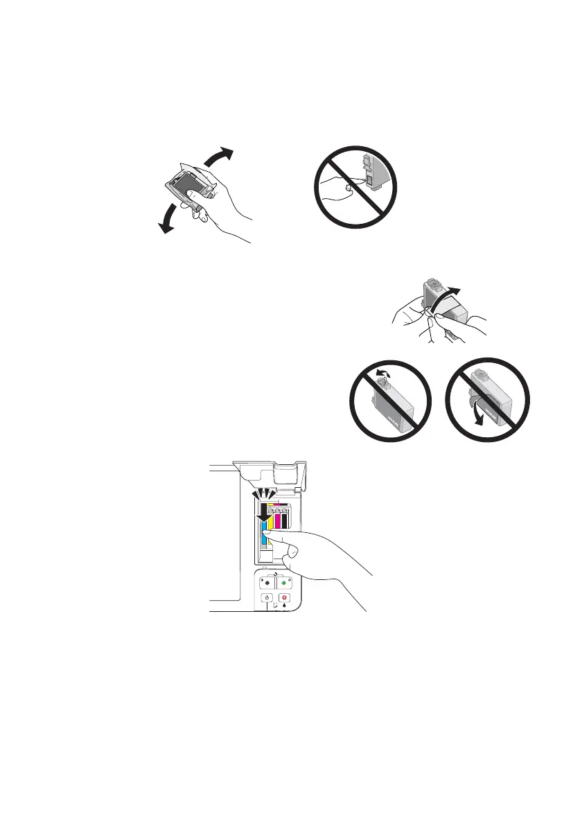 Do not touch the green chip on the front of the cartridge. This can damage the ink