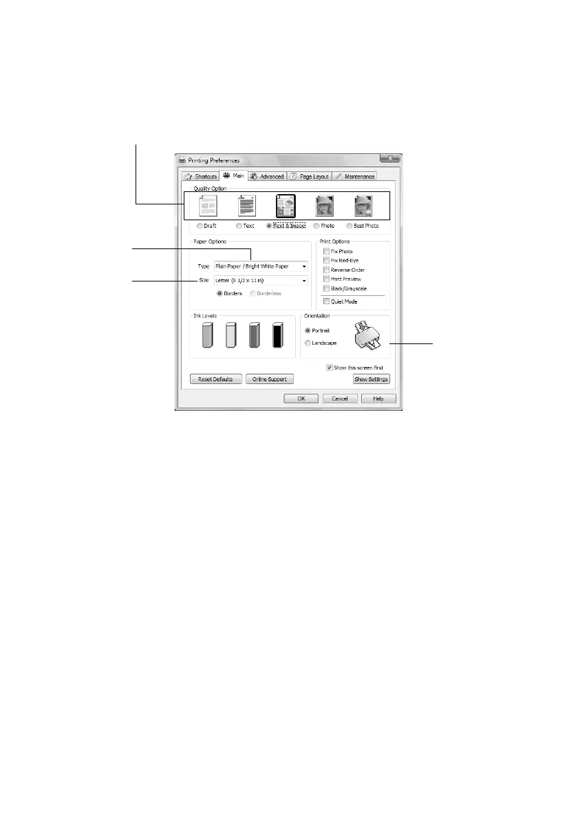 4. On the Main tab, select the basic print settings. Make sure you choose the