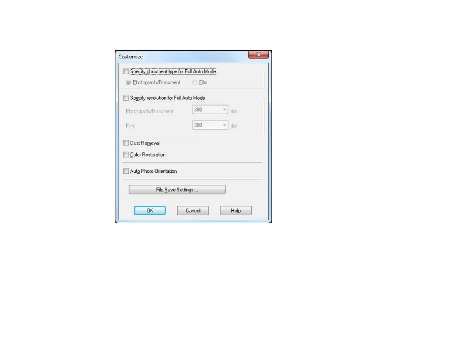2. To select image adjustment options or change your scanned file settings, click Customize, select