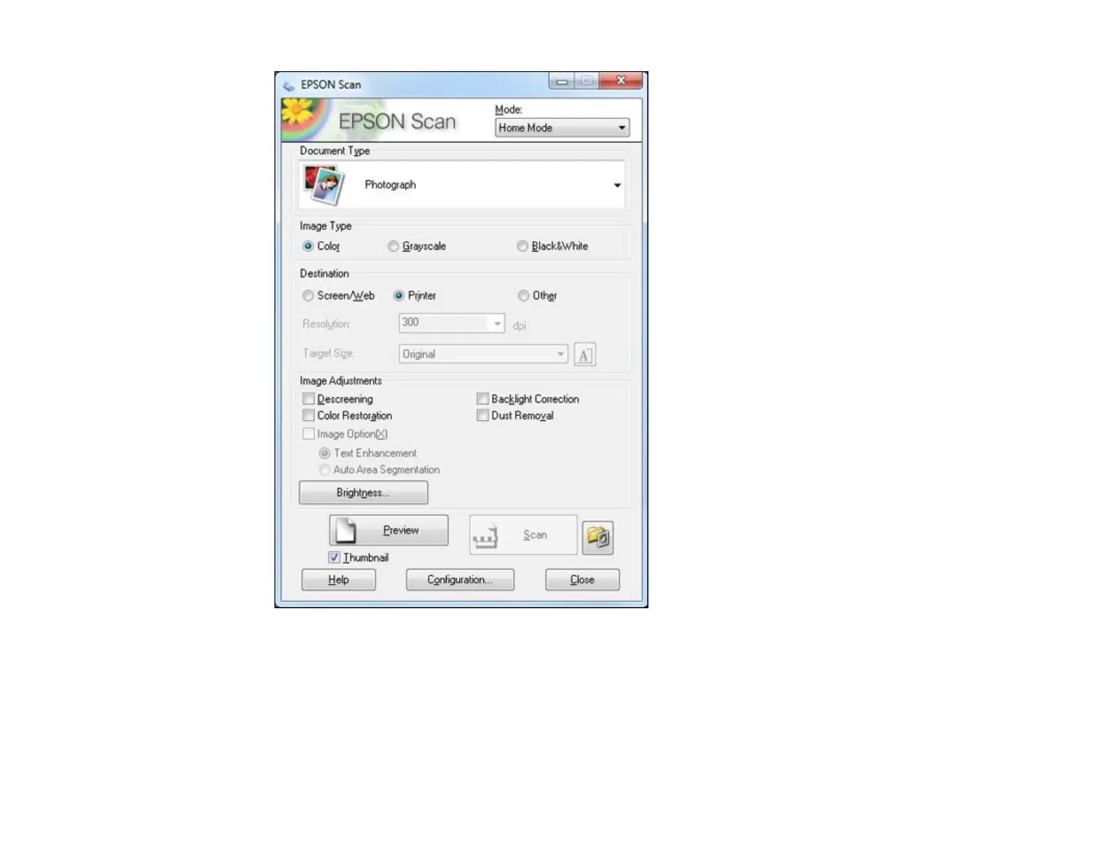 3. Select the Image Type setting that matches your original.