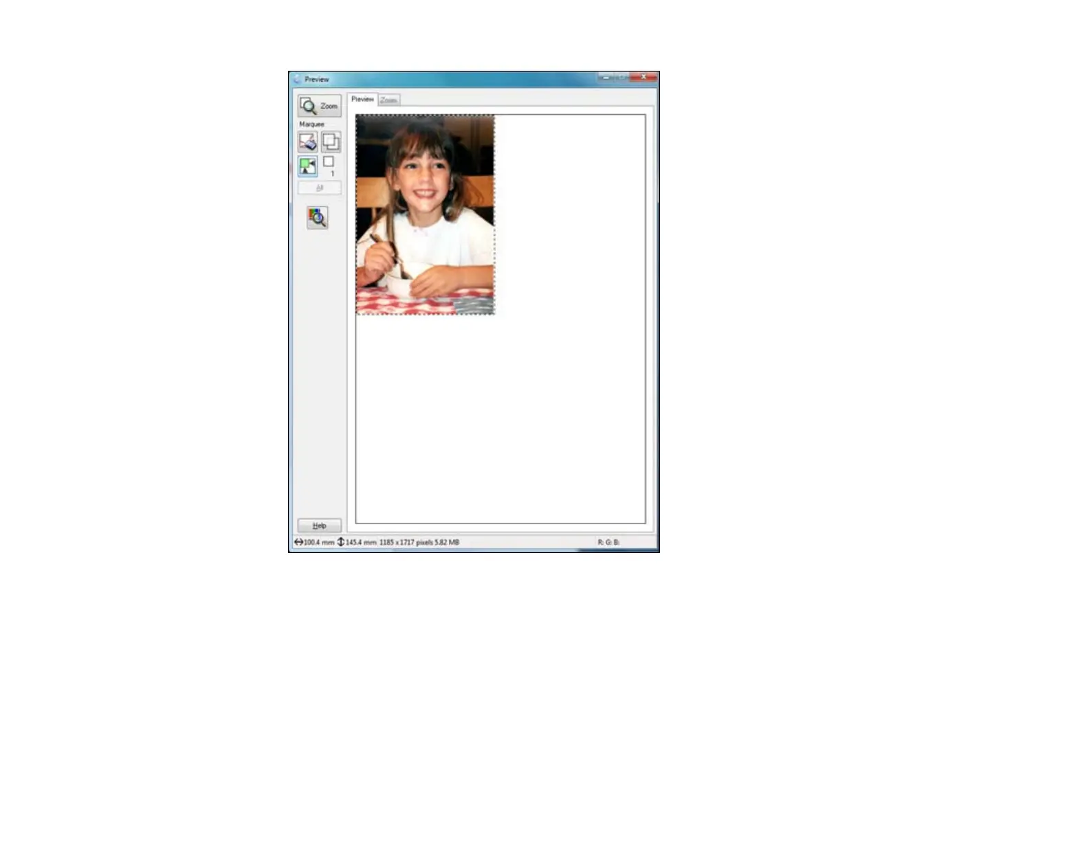 • To move the marquee, click inside the scan area and drag the marquee where you want it.