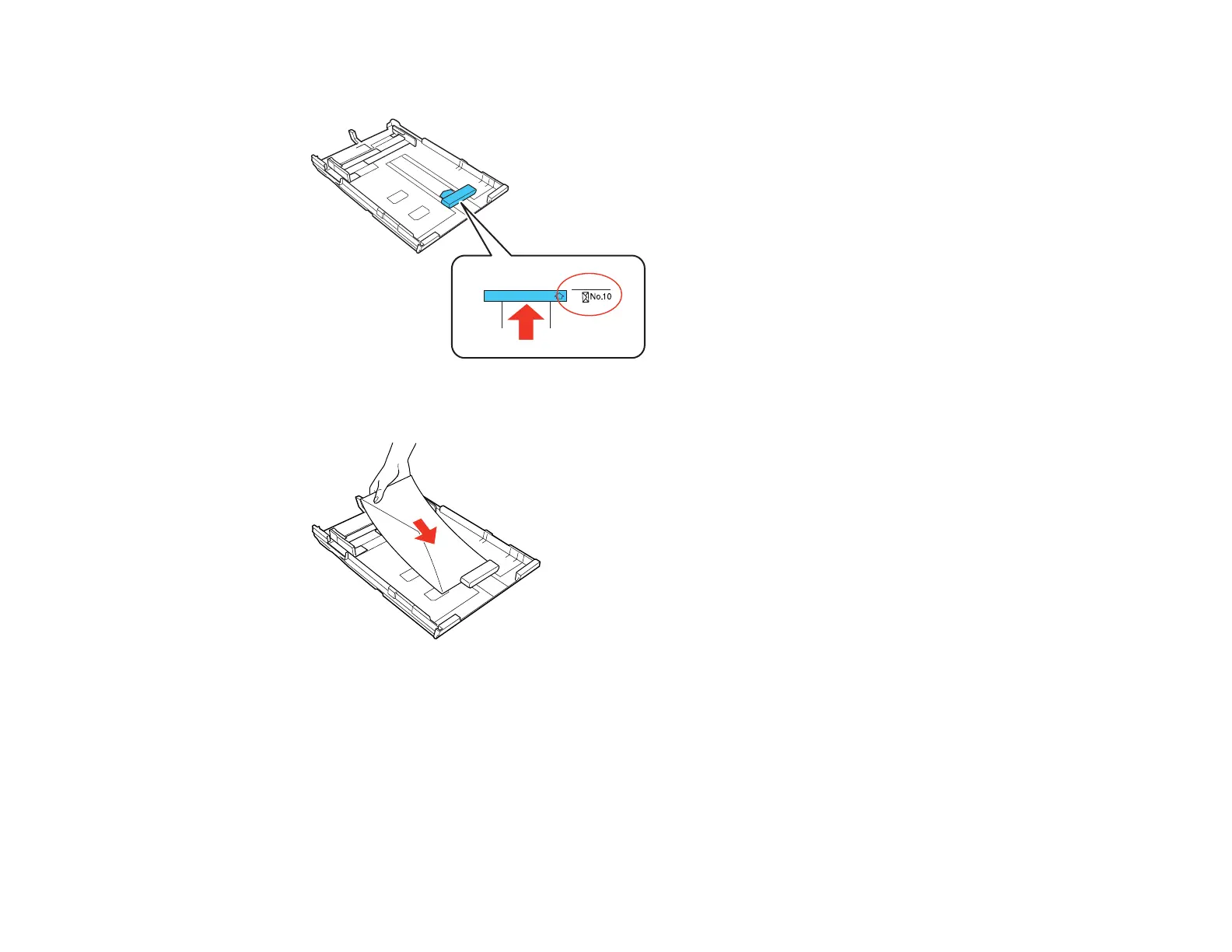 Note: Make sure the envelopes are loaded against the edge guide and not sticking out from the end