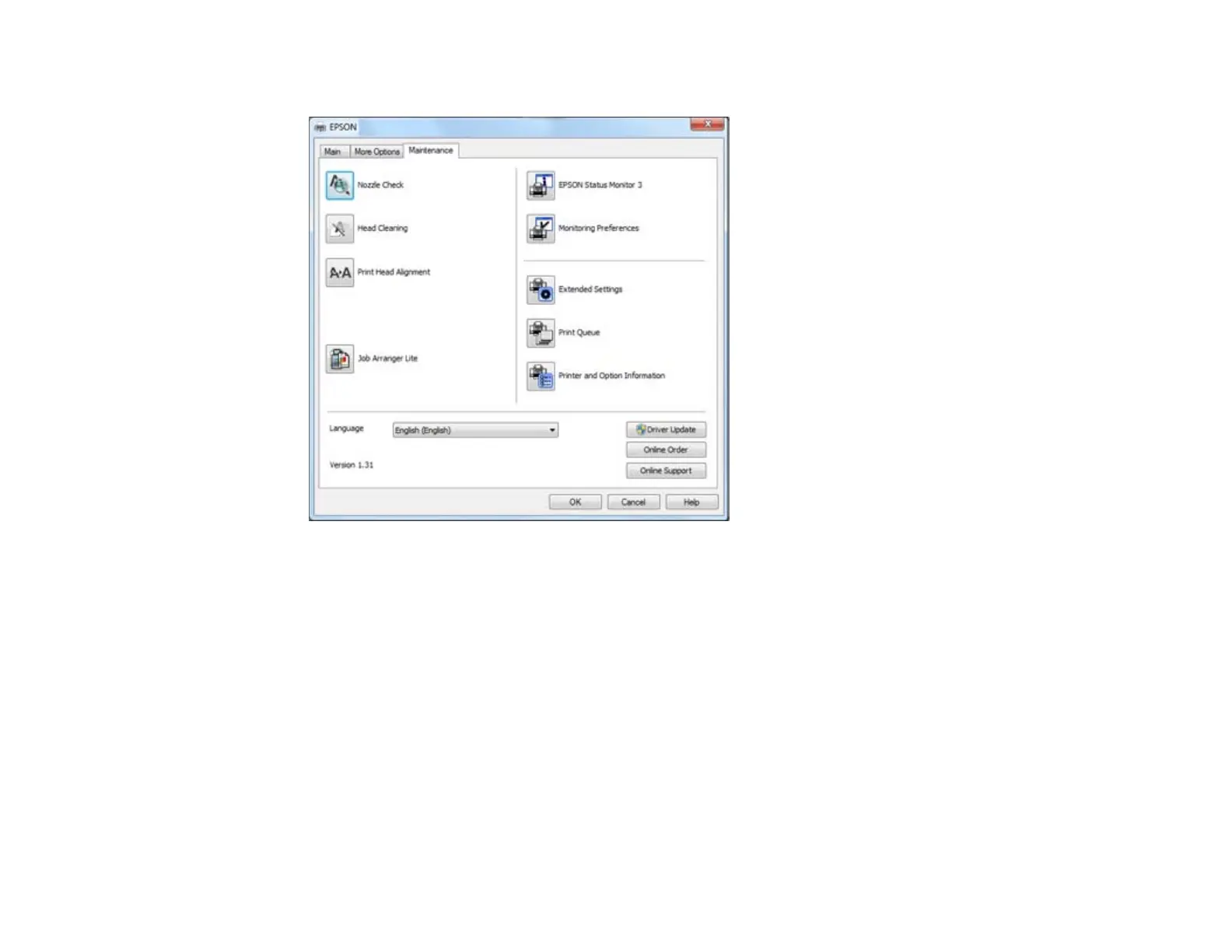 The printer software screens appear in the language you selected the next time you access them.