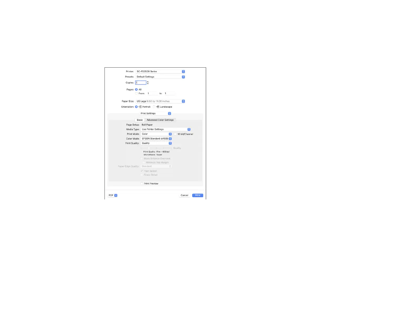 Print Quality Settings - Mac