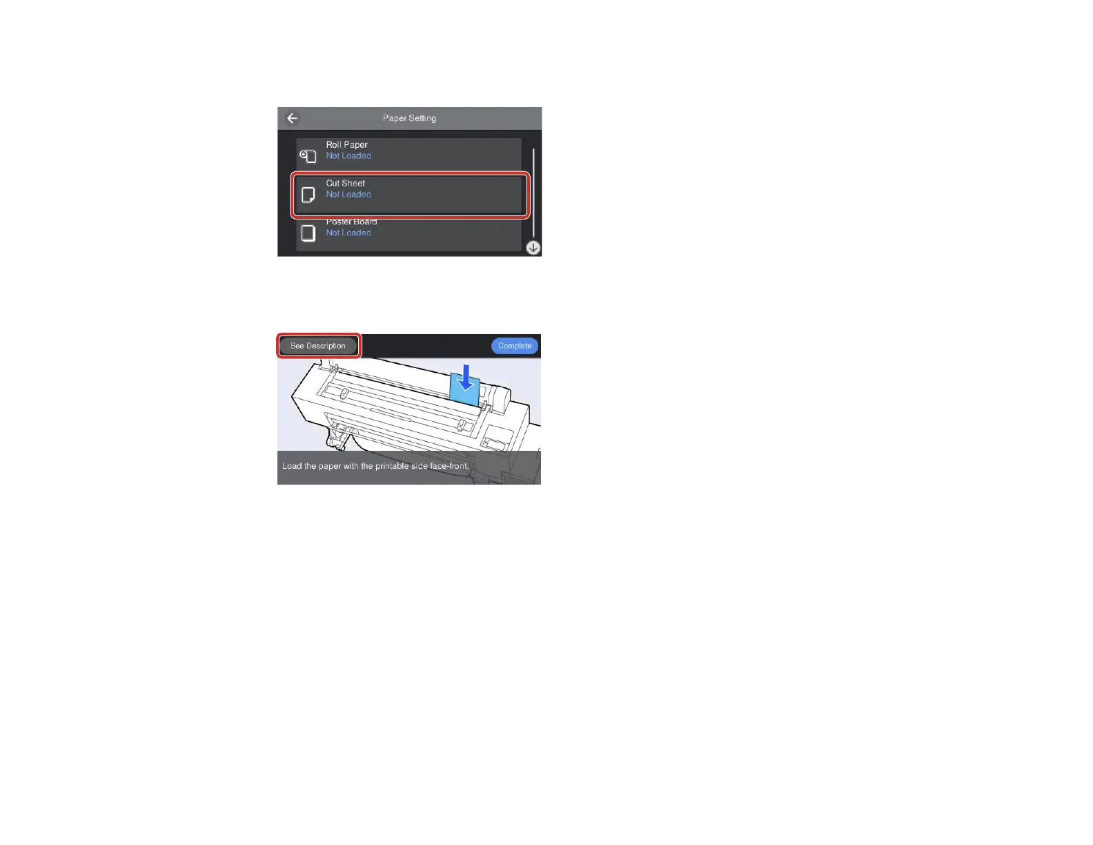 4. Select See Description and follow the on-screen instructions to load the cut sheet.