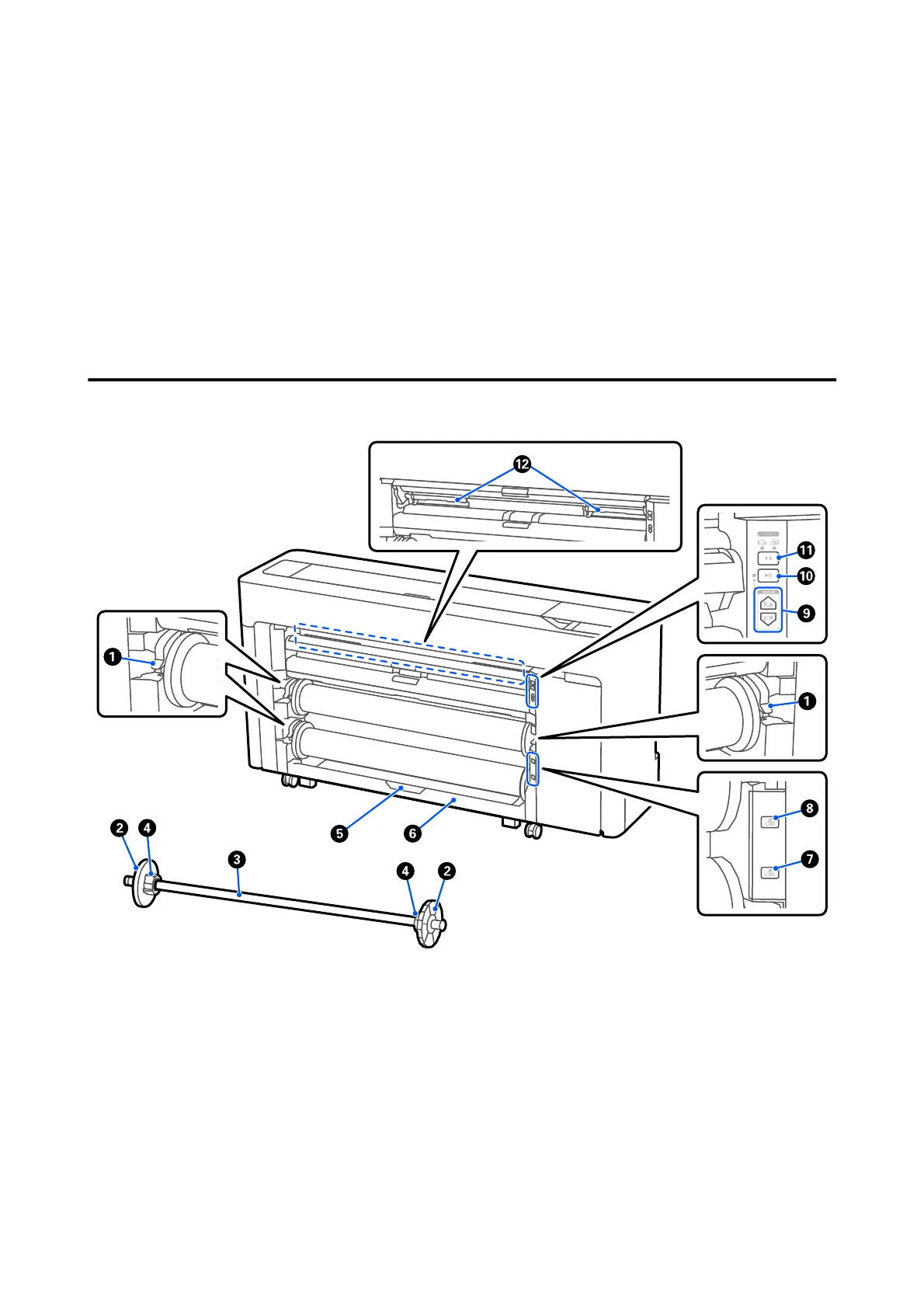 This fixes the roll paper placed on the spindle. Attach or remove the transparent media edge guide when load‐