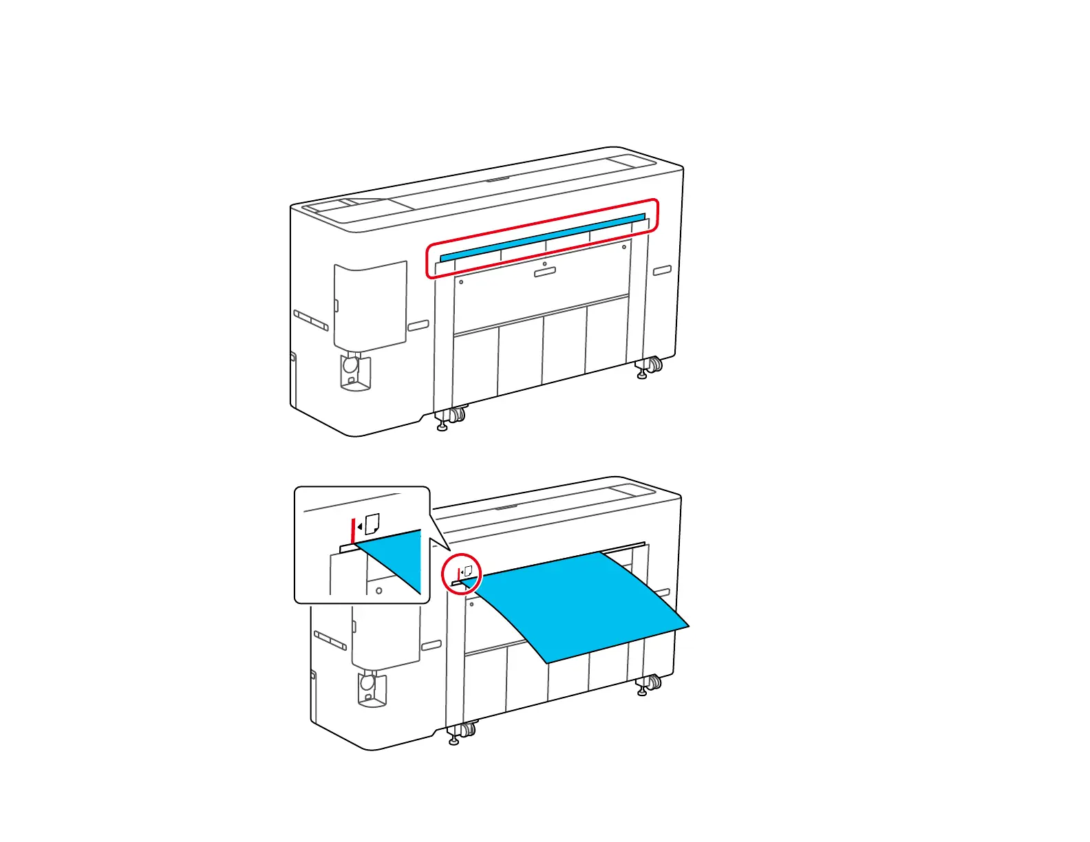 Feeding from the back of the printer: Align the left edge of the paper with the vertical line on the