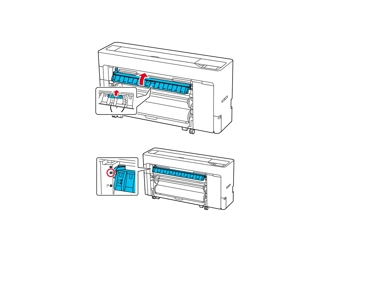20. Select Backward and Forward to adjust the paper length required for take-up loading.