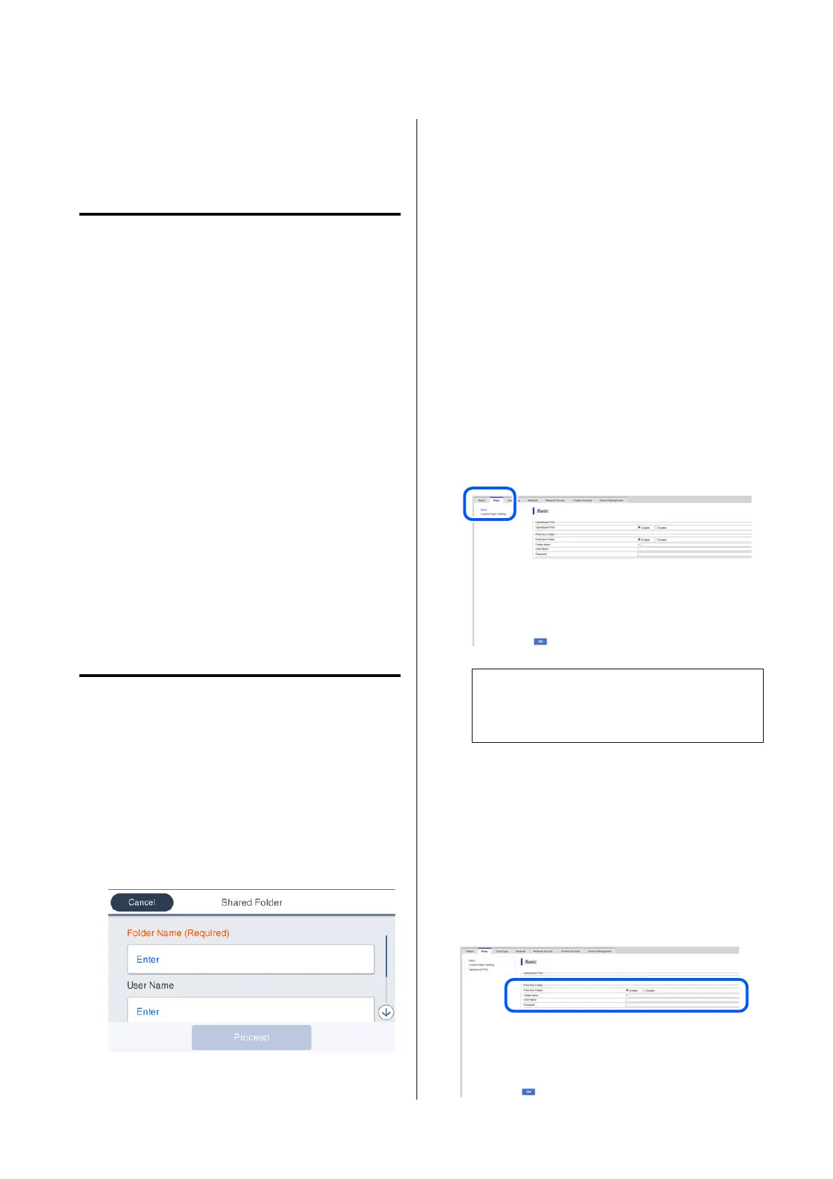 Make the settings for the shared folder on the printer's