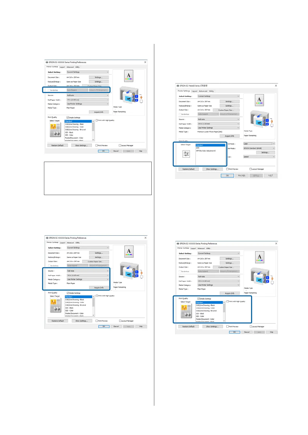 Set the print quality. Set Select Target.