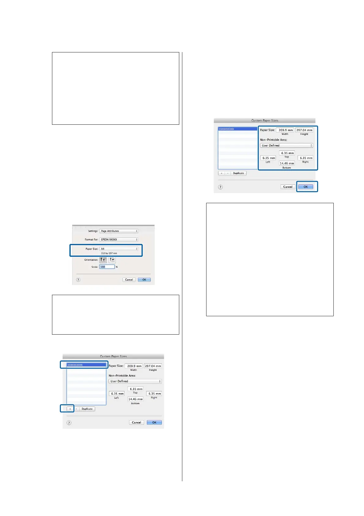 ❏ The custom paper size setting differs