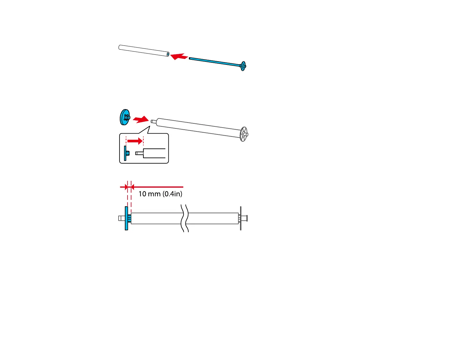 11. Attach the transparent paper stop to the spindle so that the gap between the paper stop and the roll