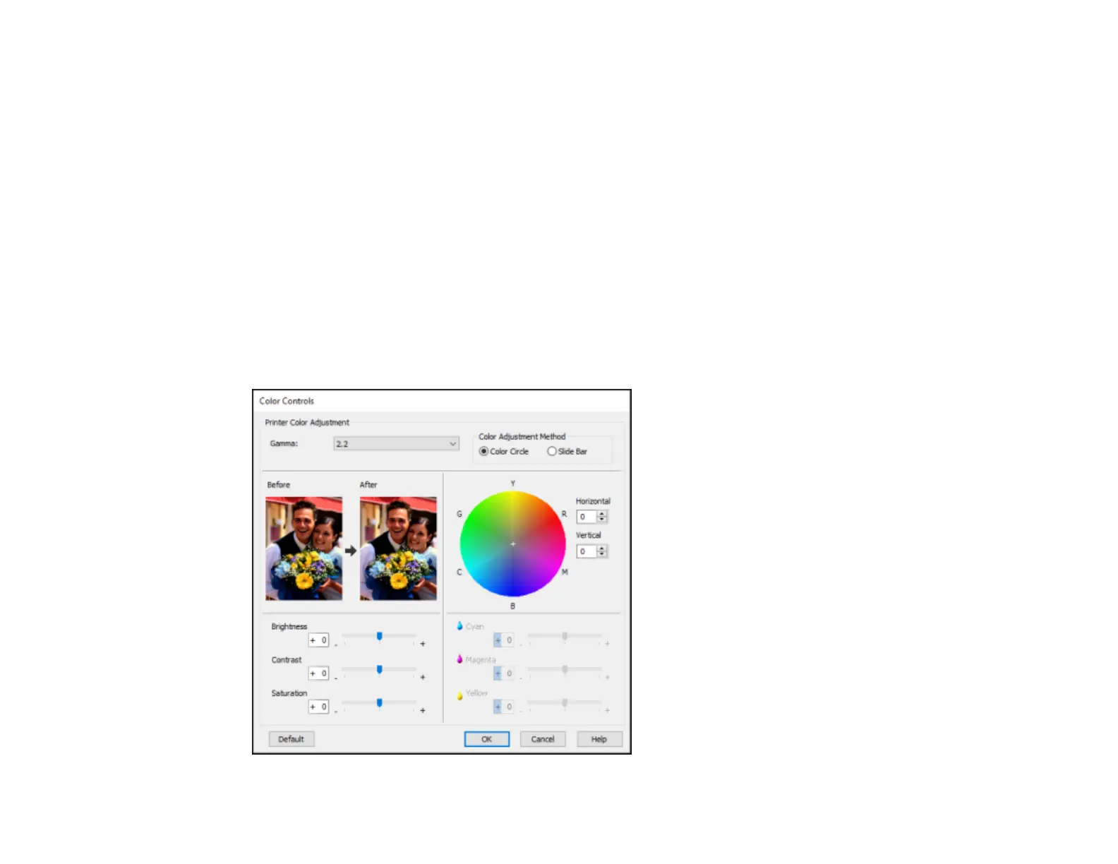 contrast, saturation, and individual Cyan, Magenta, and Yellow color tones. You can choose from two