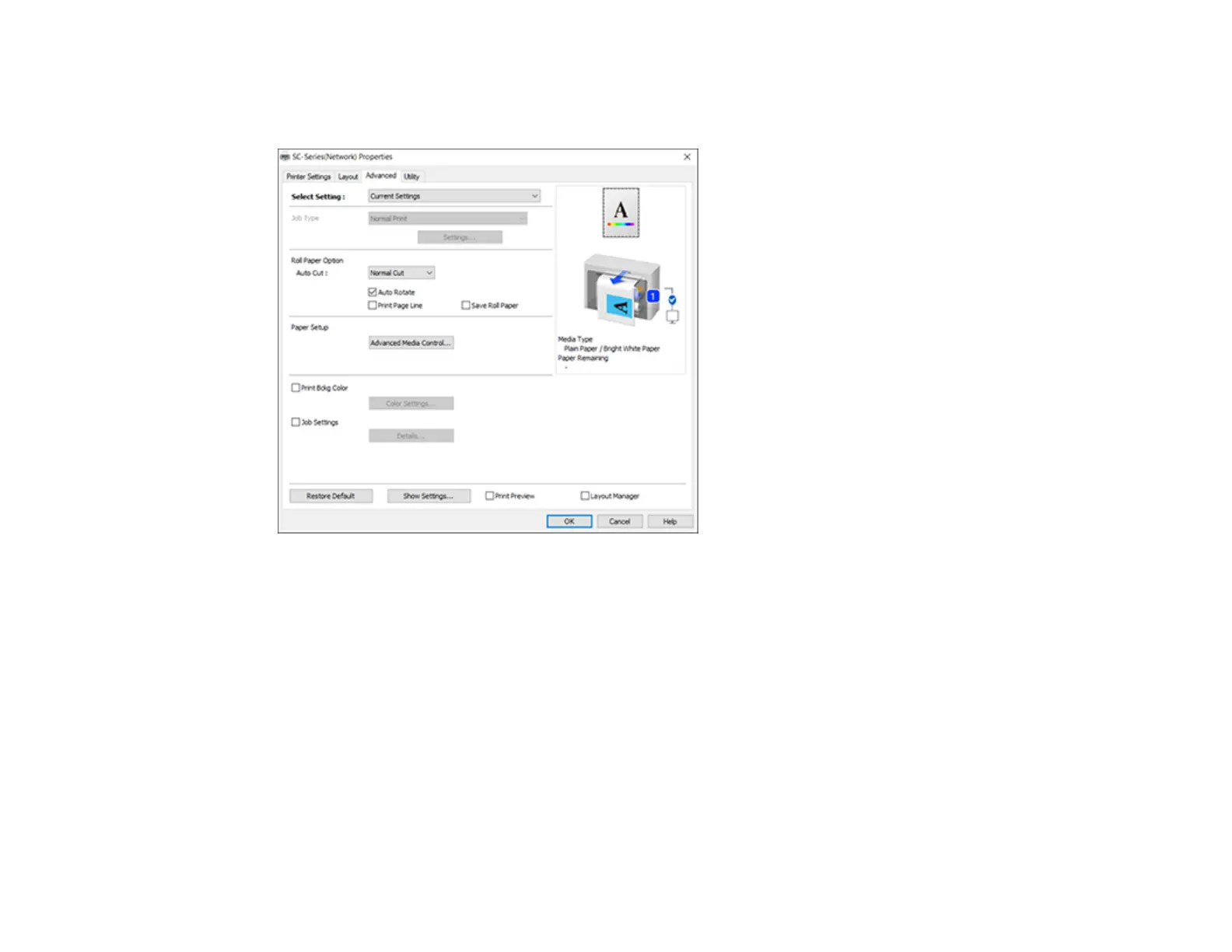 • To control how roll paper is cut after printing, select an Auto Cut option. Select other roll paper options