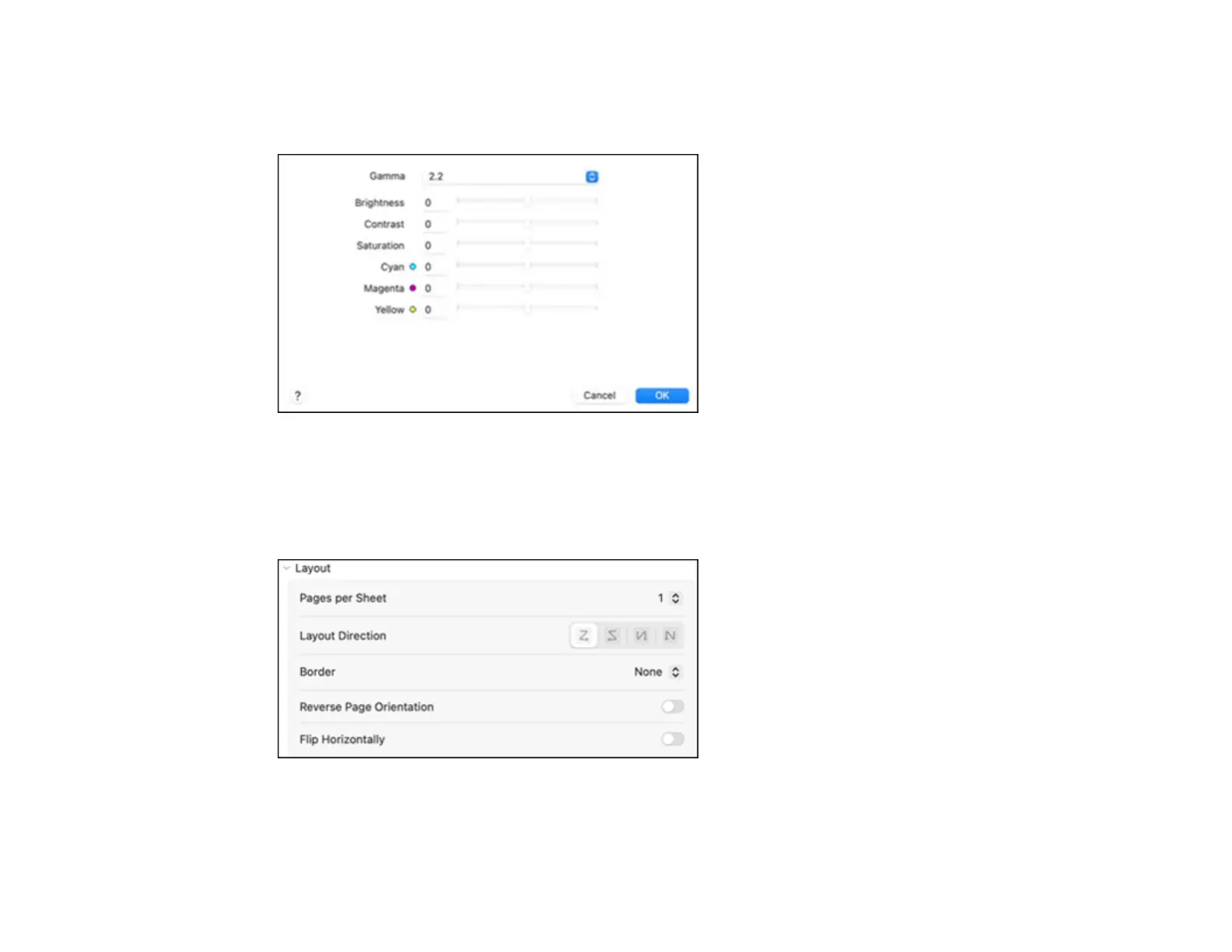 pop-up menu. To arrange the print order of the pages, select a Layout Direction setting.