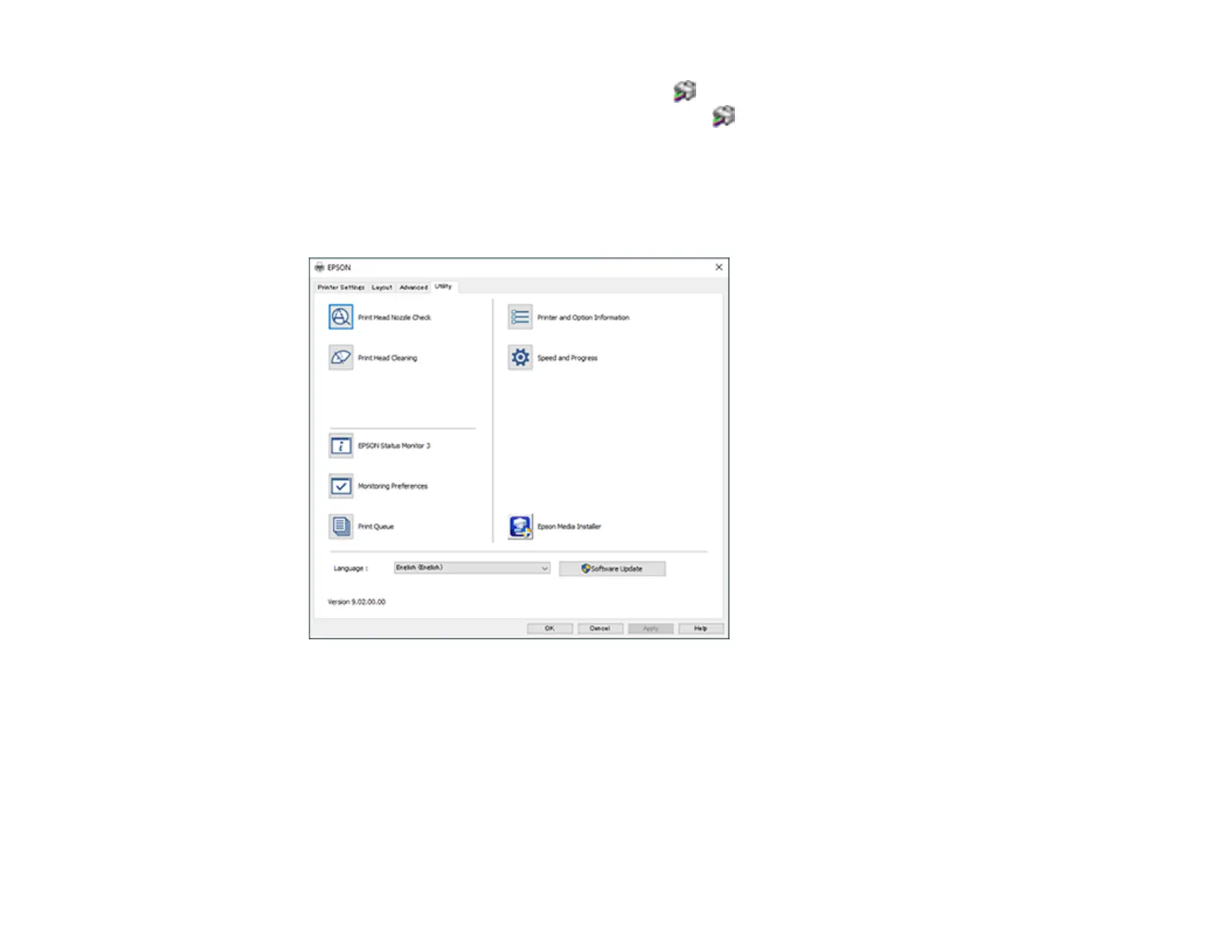 The printer software screens appear in the language you selected the next time you access them.