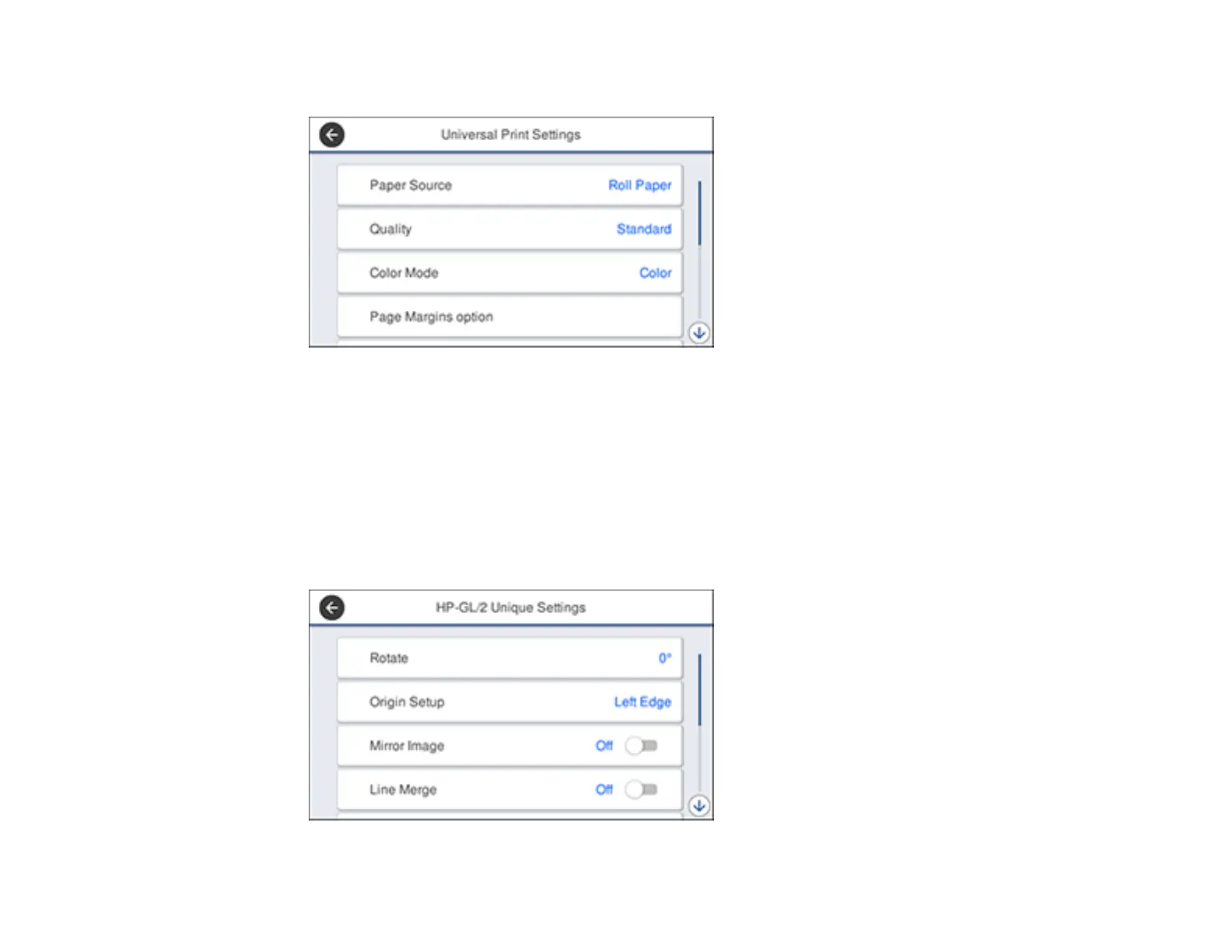Note: If roll paper is not selected when HP-GL2 or HP RTL print data is sent, an error occurs.