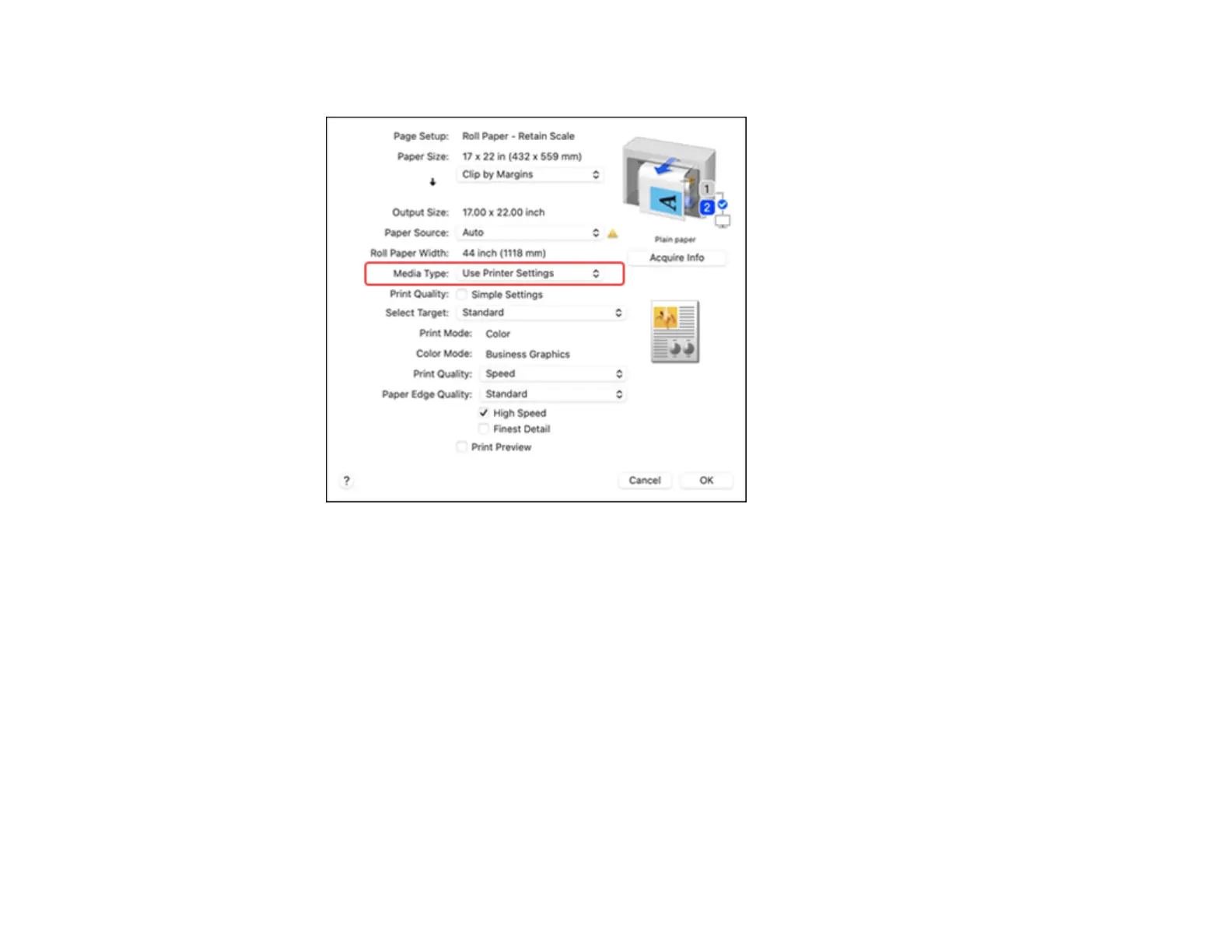 The printer will automatically switch to the roll that has the same paper type as the print job.