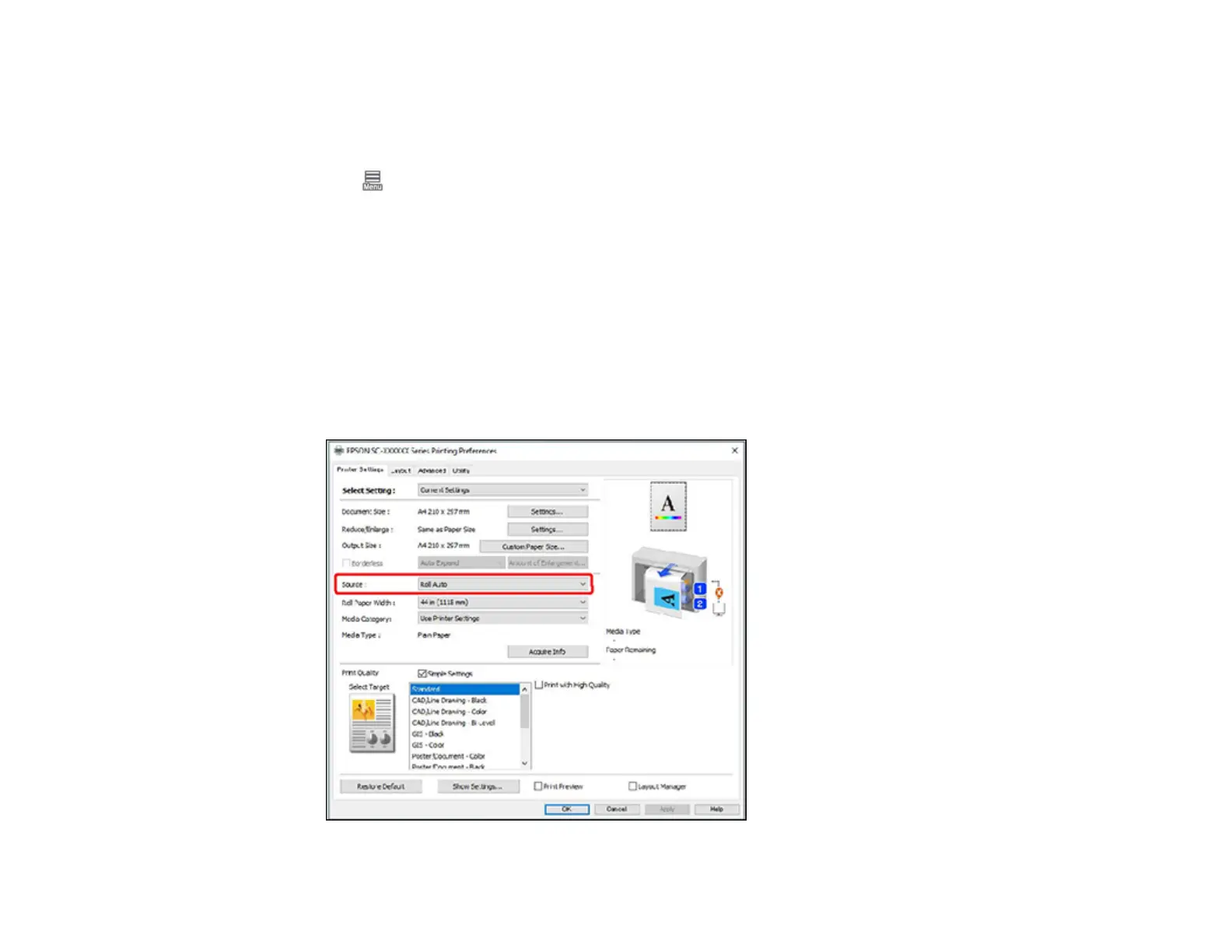 • Windows: Display the printer driver's Printer Settings screen, and then select Roll Auto as the
