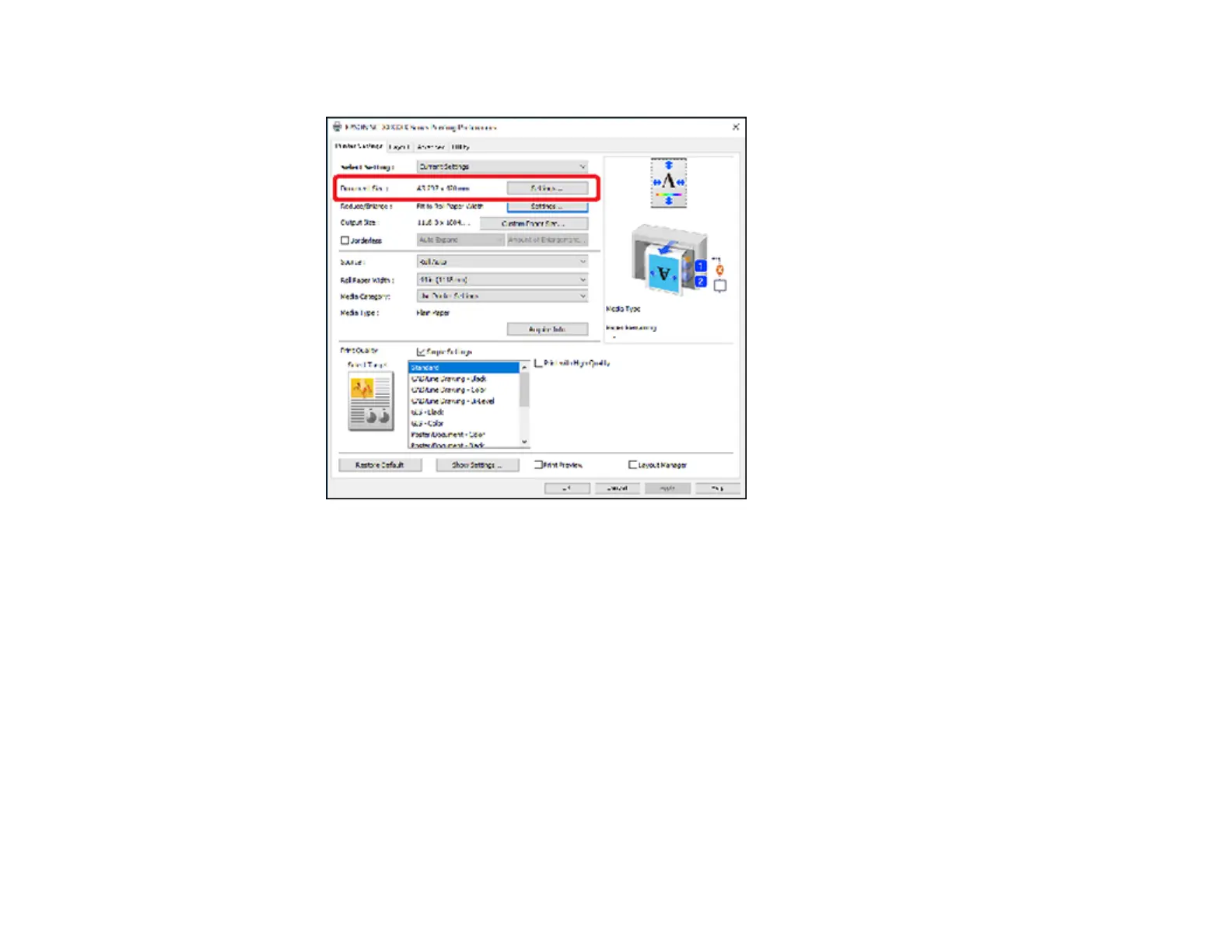 Select Document Size > Settings > Page Size and set the paper size set in the software.