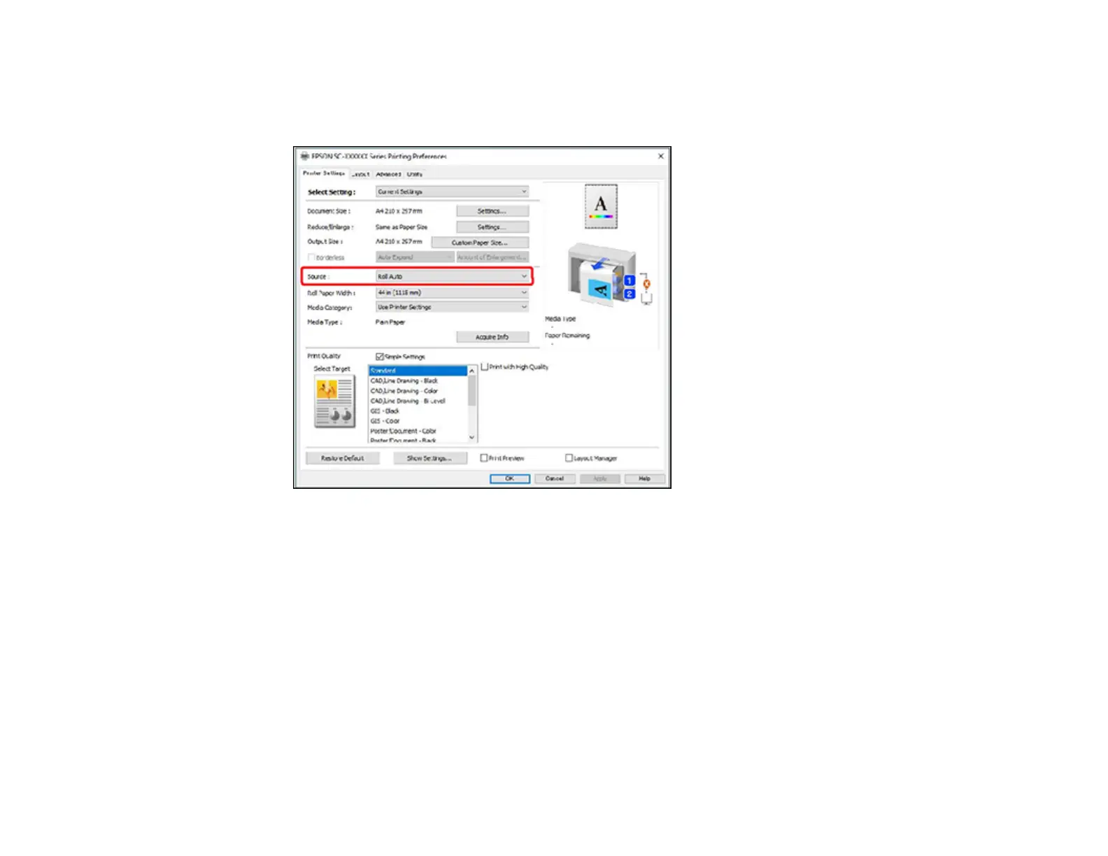 Windows: Display the printer driver's Printer Settings screen, and then select Roll Auto as the