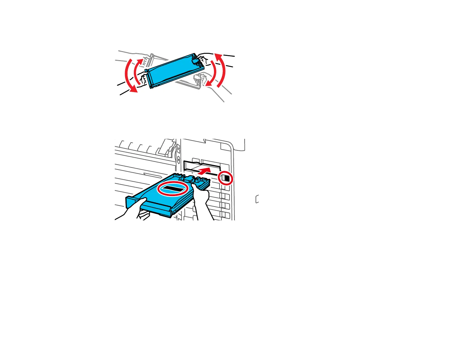 6. While the ink pack is in the tray, carefully shake it by tilting it up and down at about a 60 degree
