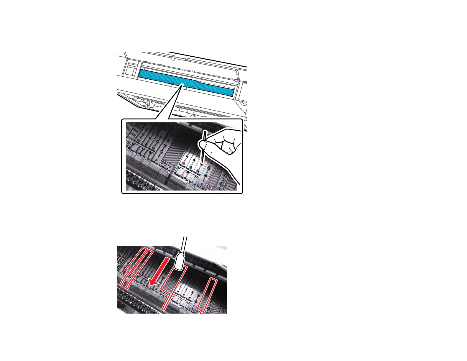 5. If any paper particles have accumulated in the holes shown here, use a pointed object such as a