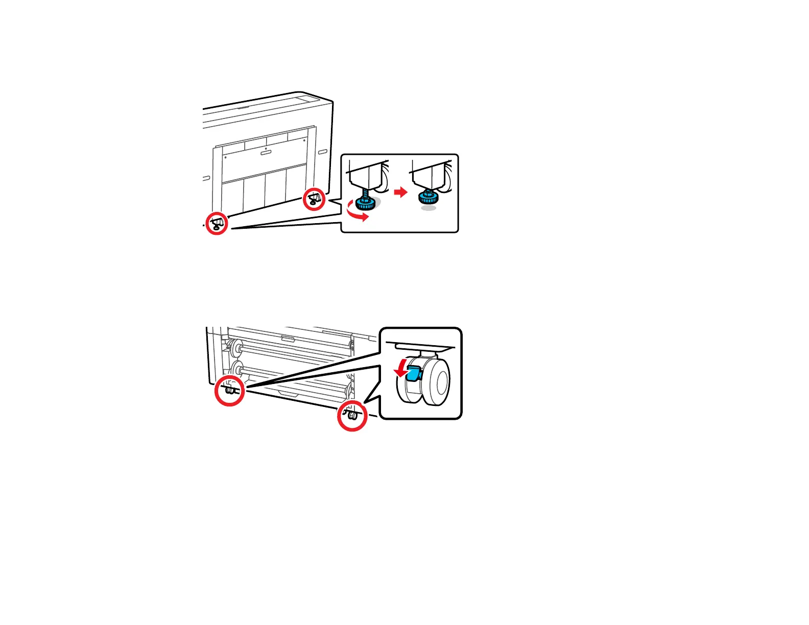8. Turn the adjustable feet on the back of the product until they no longer tough the floor, then move the