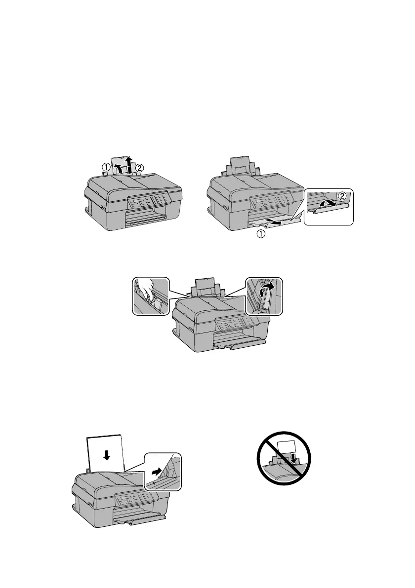 tray extensions, and raise the paper stopper.