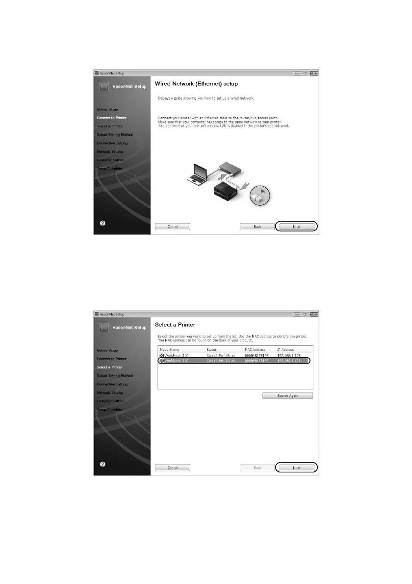 ■ If EpsonNet Setup finds more than one printer on your network, select