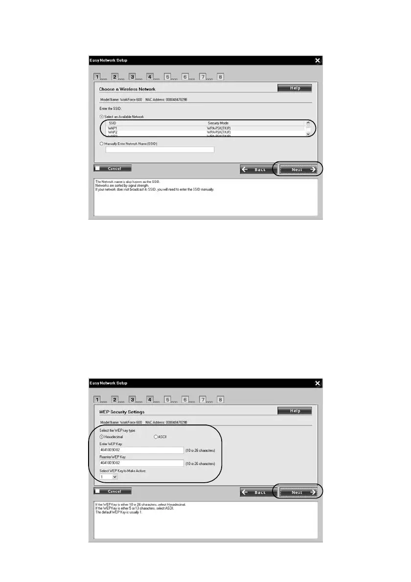 ■ If you see the WEP Security Settings screen, select ASCII if your WEP