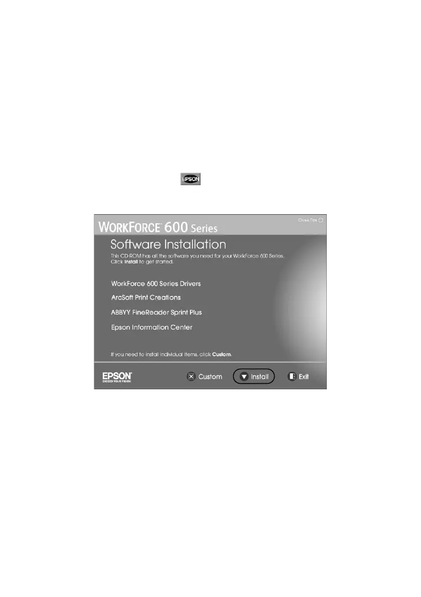 The steps show installation screens for the WorkForce 600 Series, but the