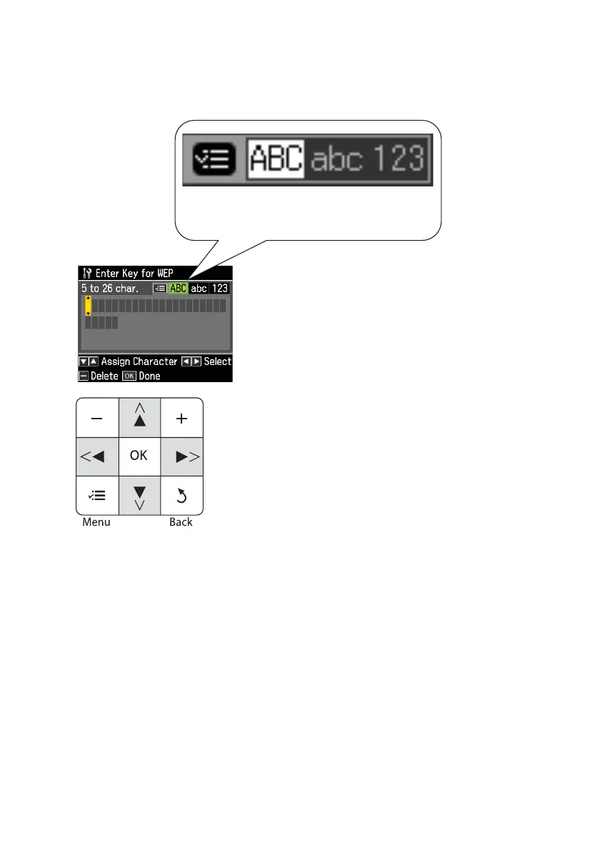 7. Use the arrow buttons on the printer’s control panel to enter your WEP key or