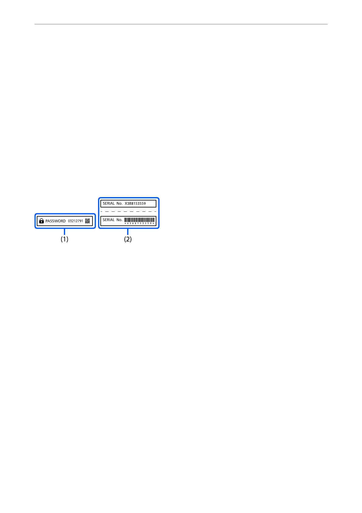 Als u etiket (1) niet kunt vinden, is het serienummer op etiket (2) de standaardwaarde. In dit voorbeeld is de