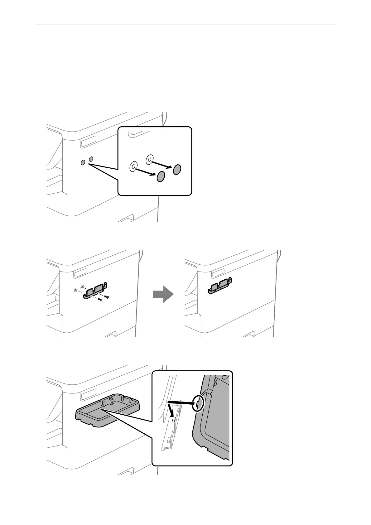 1. Verwijder de afdekking van de schroefgaten aan de zijkant van de printer.