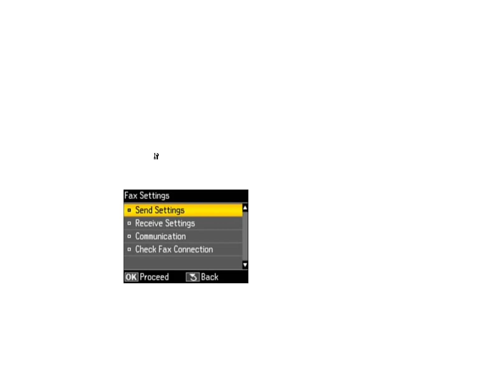 2. Press the arrow buttons to select Fax Settings and press the OK button.