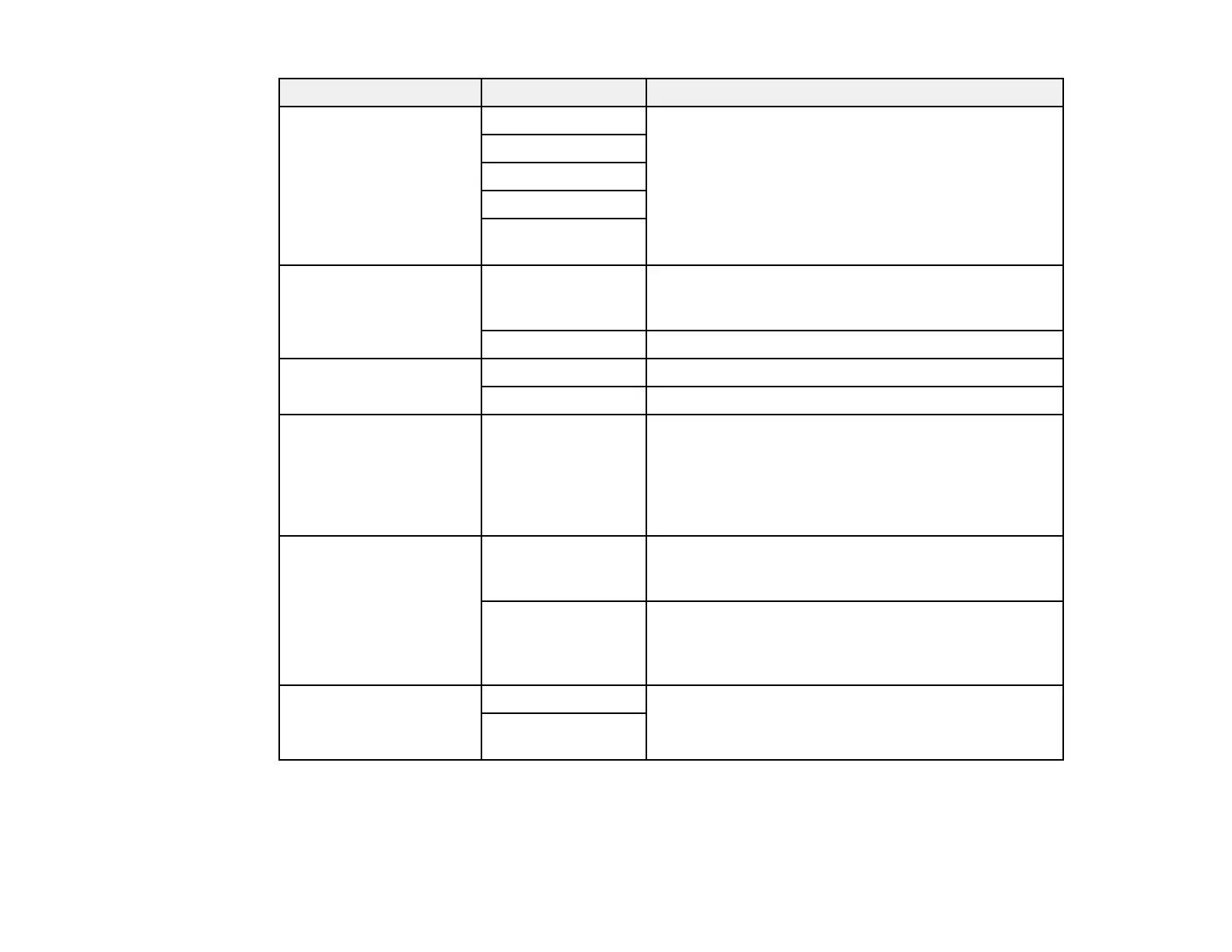 Setting Options Description