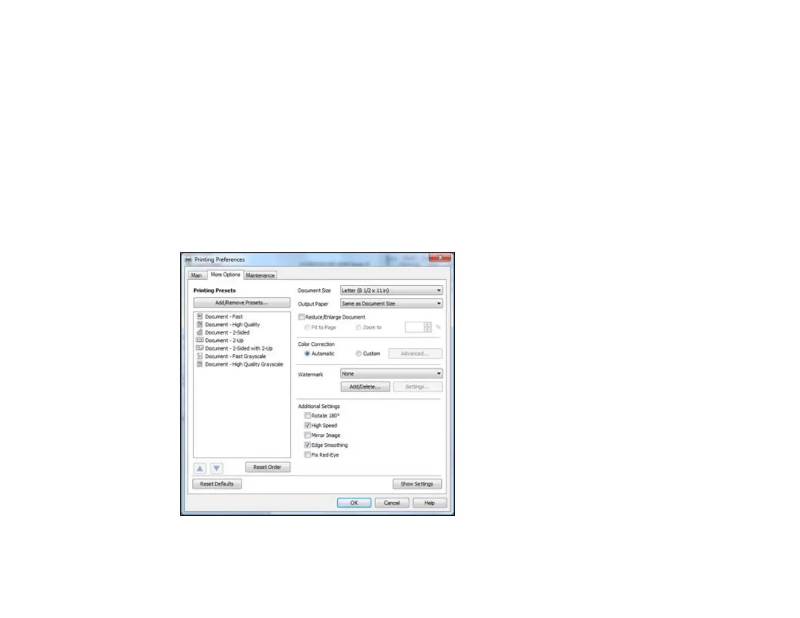 When you select the User-Defined setting, you can select any of the available options on the Print