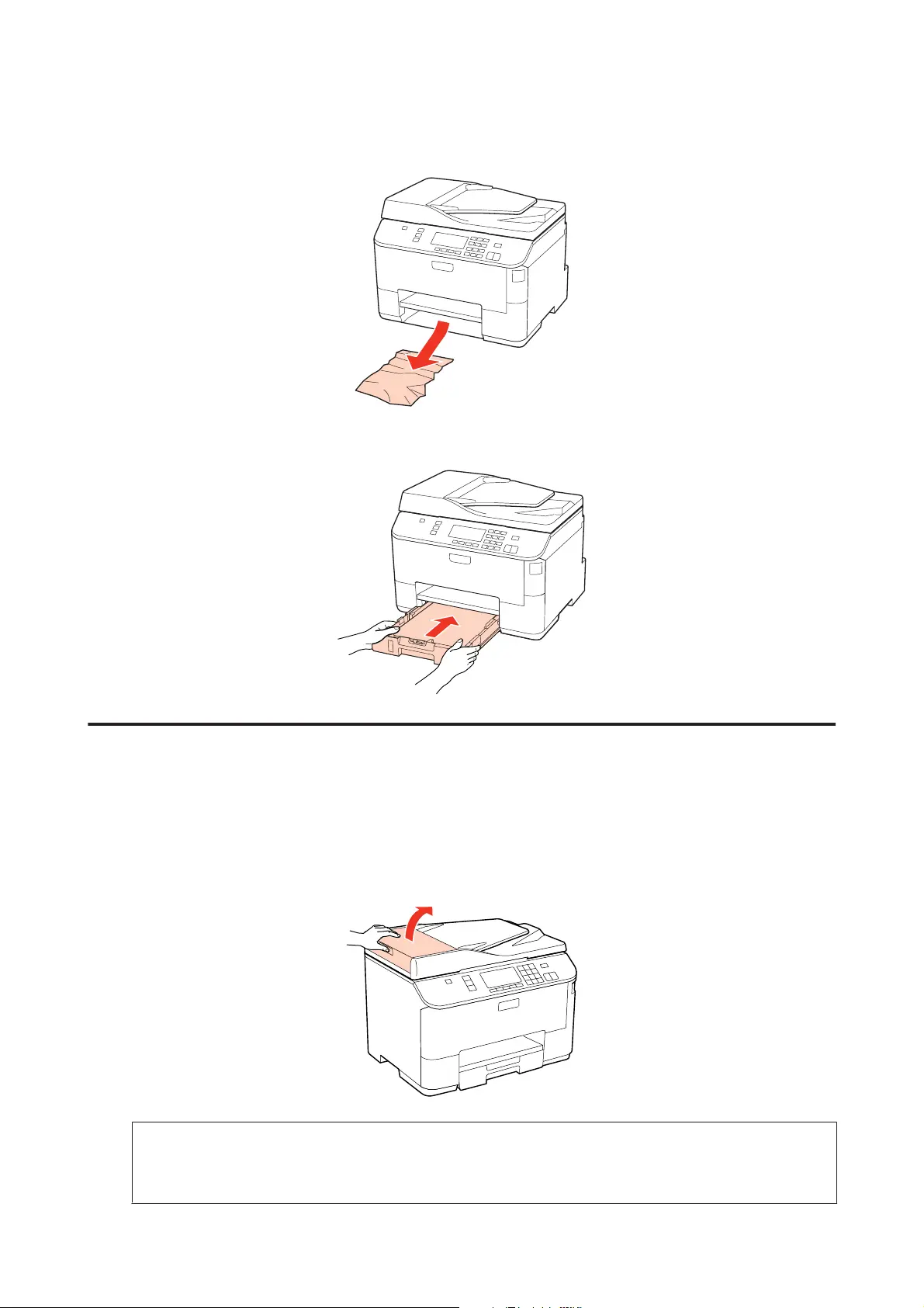 Open in ieder geval het deksel van de ADF voordat u vastgelopen papier verwijdert. Als u dat niet doet, kan de