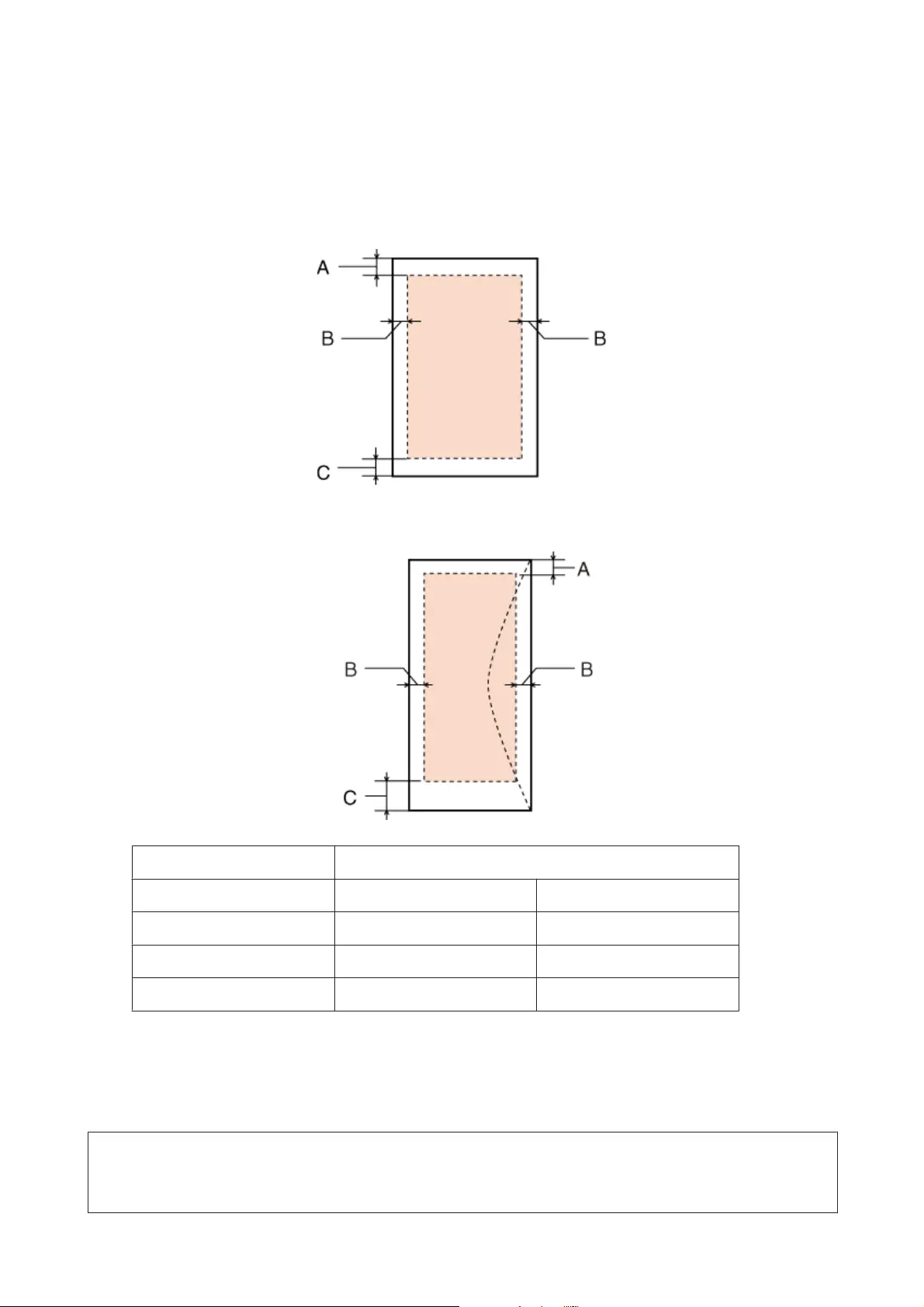 Het ingekleurde gedeelte geeft het afdrukgebied aan.