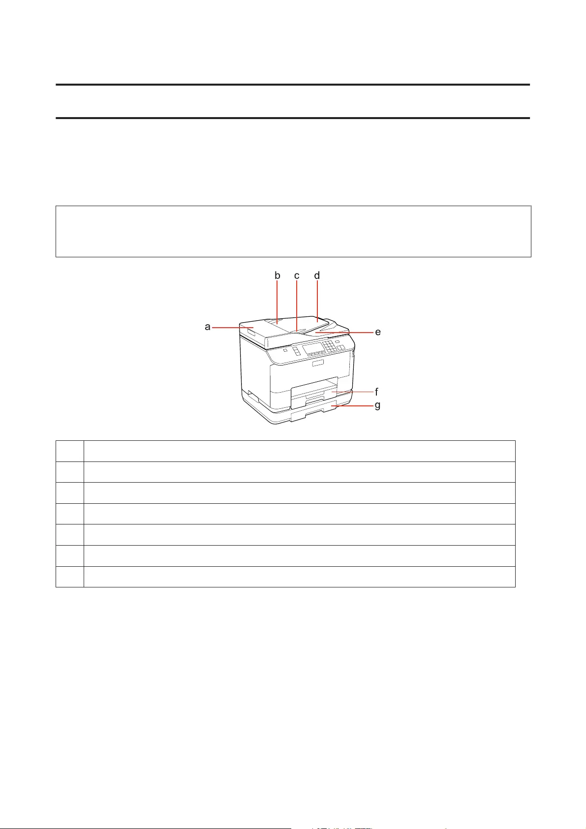 e. Uitvoerlade van de ADF (uw originelen worden na het kopiëren op deze lade geplaatst) *